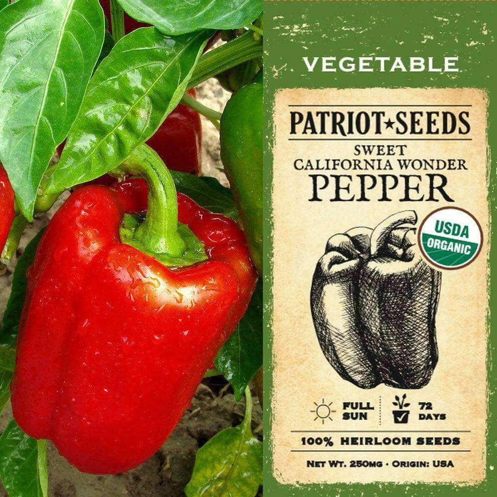 California Wonder Peppers, also known as Bell Peppers, are a sweet source of vitamin C that also adds nice crunch to a salad or vibrant flavor to sauteed or roasted vegetables. Declare your food independence and grow Organic Bell Peppers in your own garden. Organic pepper seeds from Patriot Seeds are 100% heirloom, Non-GMO, and non-hybrid. They are also open-pollinated, so you can grow, harvest, and replant your Bell Pepper crop endlessly. You can store the unused seeds for 5+ years.