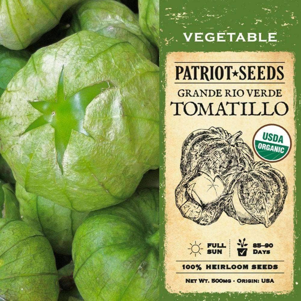 Tomatillos are a favorite ingredient in Mexican cuisine and are known for their green color and rich flavor. Grow your own tomatillo crop with Organic Tomatillo-Grande Rio Verde seeds from Patriot Seeds. Our seeds come packaged in resealable heavy-duty packages, so you can store any unused seeds for 5+ years. Declare your food independence and enjoy fresh, organic tomatillos from your own garden.