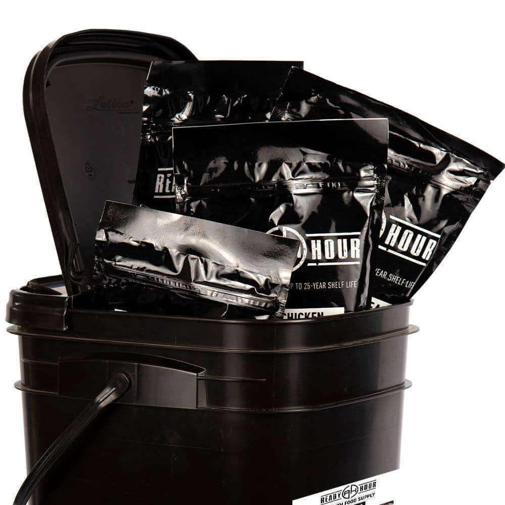 - Easy to prepare meals sealed into six rugged, water-resistant buckets (12" x 12" x 15 1/4") for long-term storage
